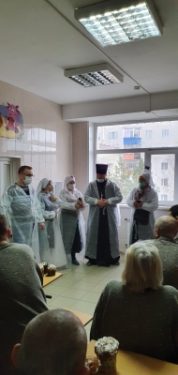 На Светлой седмице сестры милосердия из приходского общества ТРЕЗВЕНИЕ во имя святого праведного Иоанна Кронштадтского при соборе Преображения Господа Иисуса Христа с духовником иереем Сергием Мартынюк посетили с пасхальными поздравлениями пациентов Сургутской клинической психоневрологической больницы.