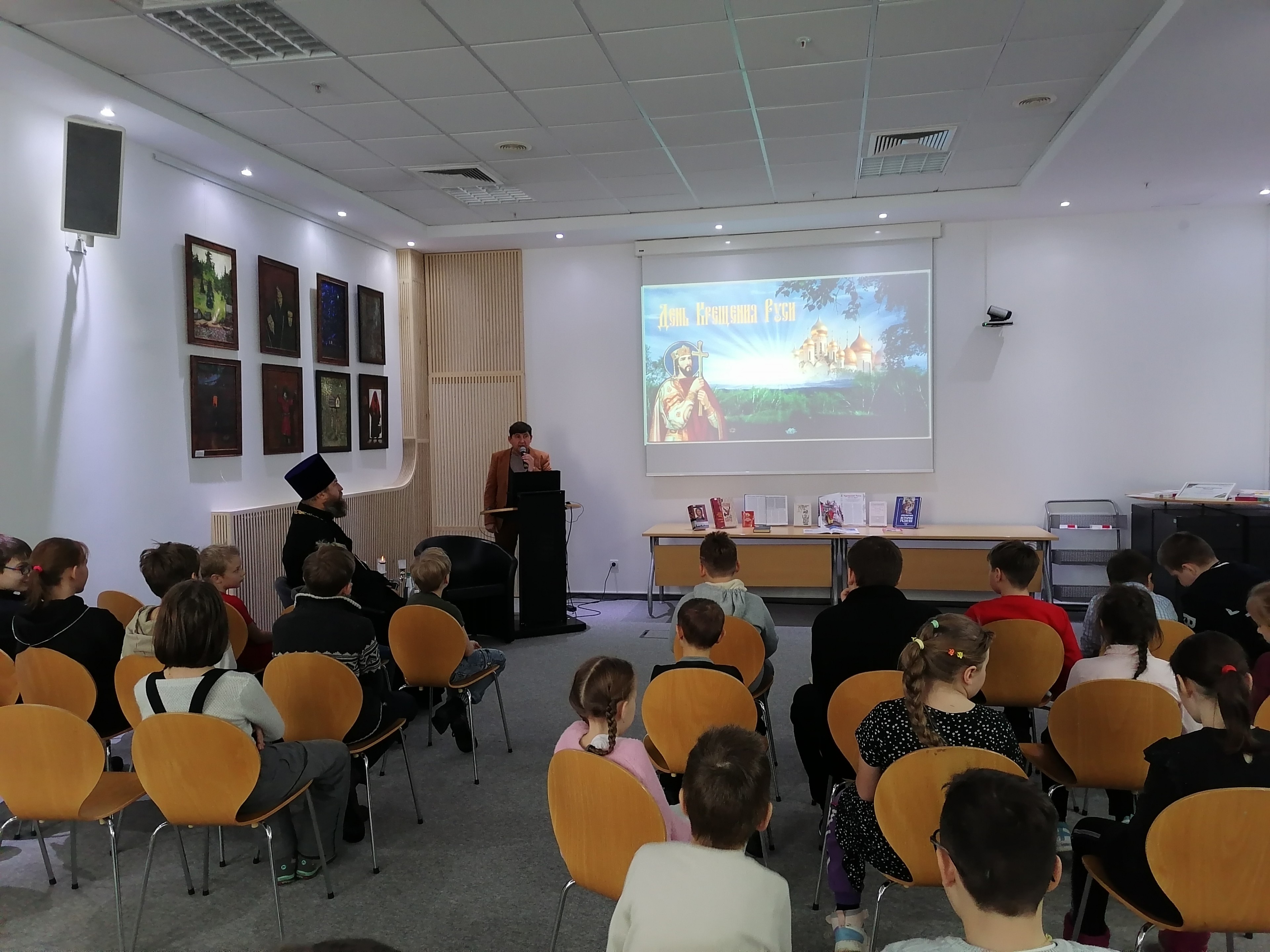 Дети послушали доклад ведущего Юрия Николаевича Боровикова, посмотрели два видеосюжета об истории и значении Крещения Руси и Дне народного единства, для закрепления услышанного ответили на вопросы интересной викторины.