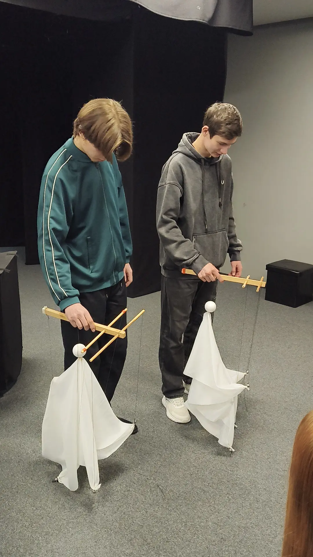 Часть первая: от Петрушки до Саламандры, или Как не завязать пальцы в узел. Проводником в мир театральных тайн стала завлит Марианна Воронцова, которая буквально влюбила ребят в каждый уголок театрального дома. Гости прошли по таинственным лабиринтам, где история самого задорного героя — Петрушки — переплеталась с рассказами о жизни актерских гримерок. В какой-то момент, пока никто не видел, самым любопытным даже удалось примерить маску Саламандры из спектакля «451 градус по Фаренгейту» — редкая удача и возможность почувствовать себя частью большой и серьезной постановки. В швейной мастерской ребята узнали, как из тонких линий на бумаге и крошечных макетов рождаются будущие декорации и костюмы. Но теория быстро сменилась практикой: актеры Дмитрий Капустин и Юлия Пудовкина устроили мастер-класс по кукловождению. Оказалось, что заставить куклу просто кивнуть или сделать шаг — это не просто техника, а настоящее чудо, в котором ребята на время сами превратились в кукловодов. Выяснилось, что договориться с куклой порой сложнее, чем с лучшим другом!