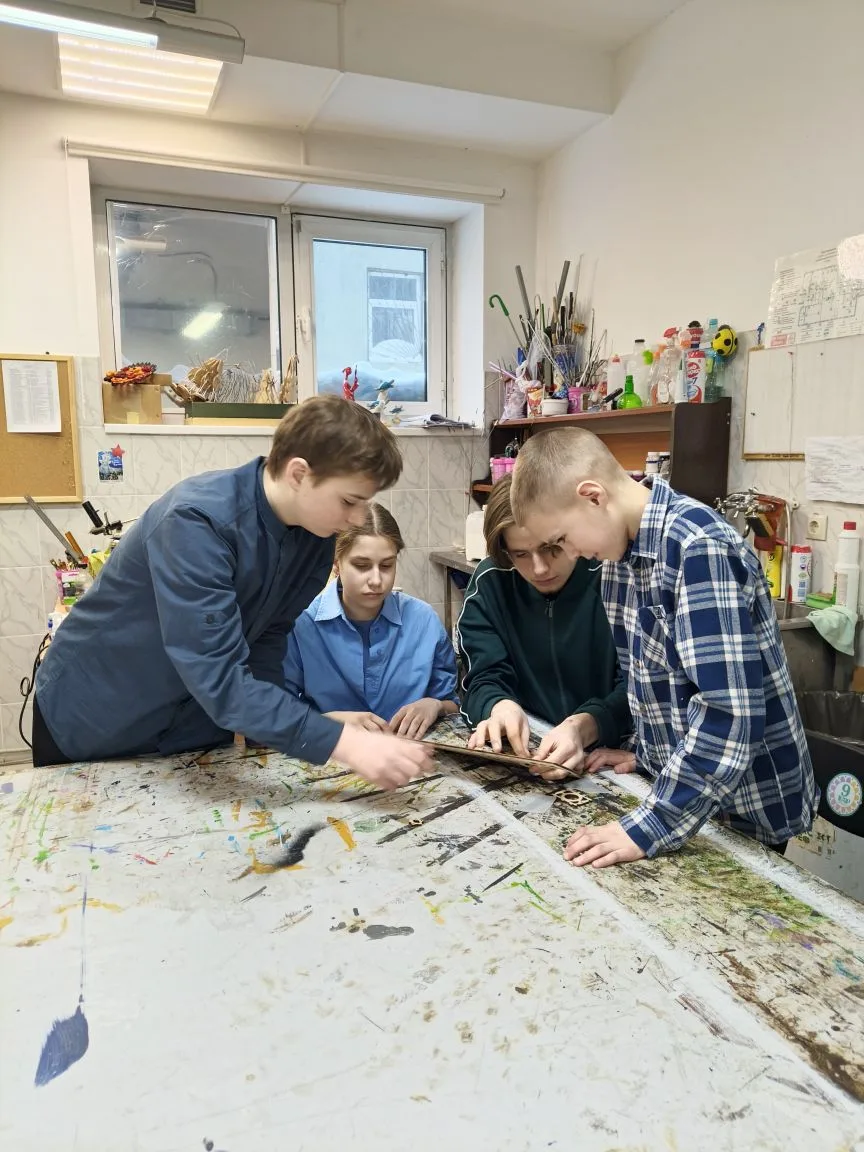 Когда занавес первой части программы опустился, наша делегация переместилась в художественную мастерскую к и.о. главного художника Светлане Узбековой. Здесь воздух пропитан запахом творчества, а фантазия позволяет превращать обычный пенопласт, поролон или пенополистирол в сказочные предметы. Пока все изучали секреты материалов, один юный мастер под чутким руководством взял в руки строительный фен и совершил маленькое технологическое чудо: превратил обычный изолон в реалистичную кору дерева. Но на этом работа не остановилась. Под бдительным контролем заведующего художественно-оформительской мастерской Алексея Дремина ребята помогали собирать станок-качалку — важный реквизит для нашей будущей премьеры «Страсти по Шерлоку». Теперь частичка труда наших ребят будет жить на сцене в каждом спектакле! Первый день пролетел на одном дыхании, оставив после себя творческое вдохновение и легкую пыльцу изолона на одежде. Это было живо, ярко и очень вдохновляюще! Впереди самое интригующее: тренинги по актерскому мастерству и сценической речи. Театр открывает сердца тем, кто готов творить, и это только начало!