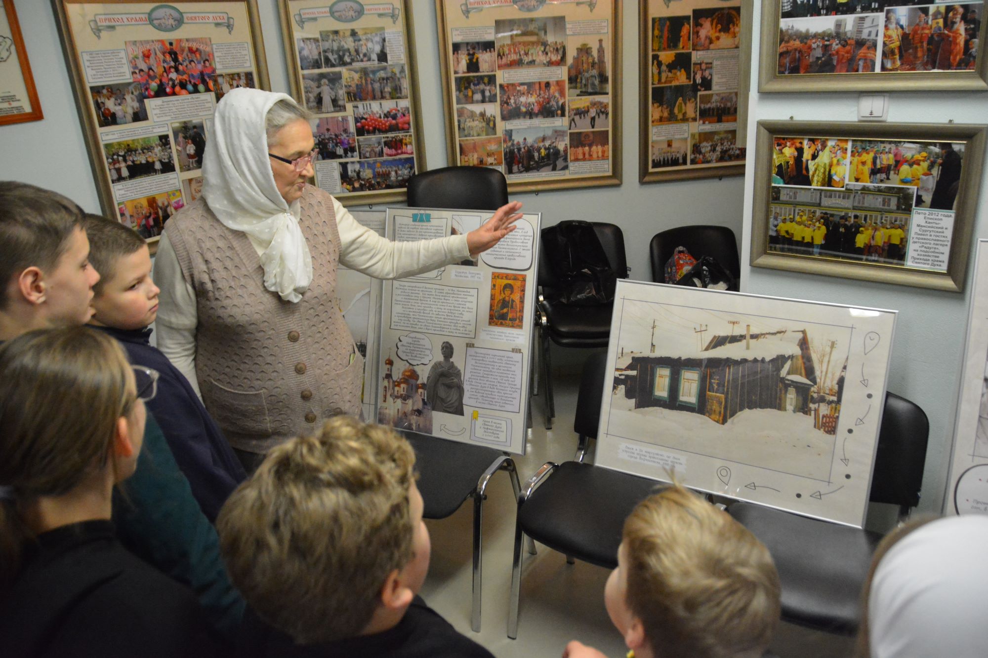 С присущей им заботой и любовью, они организовали замечательное молодежное мероприятие с погружением в историю создания прихода храма Святого Духа, страницы строительства храма, о ней с любовью рассказала неутомимая Татьяна Александровна. Её память сохранила удивительные моменты, когда будущие священники, а тогда воспитанники Воскресной школы с радостью помогали строить здание комплекса православной общины, в котором сейчас и проводилась экскурсия. Познавательной была и беседа о иконописи в расписывающемся храме Почаевской иконы Божией Матери, которую провел иерей Иоанн Рассудов.