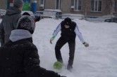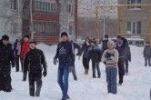 В субботу 23 февраля прихожане храма Рождества Христова, участники «Югры молодой православной» и ученики 6-9 классов Нижневартовской православной гимназии собрались на гимназической спортплощадке померяться силами в необычном состязании — футболе на снегу. Необычным был как состав команд — с обоих сторон набралось более 30 участников: молодежь, гимназисты и целые семьи, так и условия игры — она проходила на слаборасчищенном поле. Тем задорнее выглядело это зрелище! Активным игроком одной из команд стал настоятель прихода протоиерей Сергий Шевченко. Оказалось, что подрясник не только не мешает игре в мяч, но и помогает игроку в сане делать неожиданные «финты».