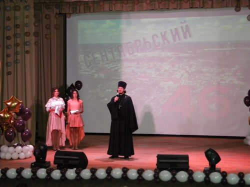 10 сентября 2017 года настоятель Прихода храма в честь Воздвижения Честного и Животворящего Креста Господня п. Сентябрьский принял участие в торжественном мероприятии, по случаю 46-летия со дня рождения поселка. С поздравительными словами к жителям обратились иерей Олег Мхамадиев, глава поселения Андрей Владимирович Светлаков, помощник главы района Евгений Георгиевич Дианов. В ДК «Жемчужина Югры» был организован концерт силами сотрудников культуры и учащихся общеобразовательной средней школы. Радость торжества разделил творческий коллектив культурно-спортивного комплекса «Сияние севера» п. Салым.Галерея