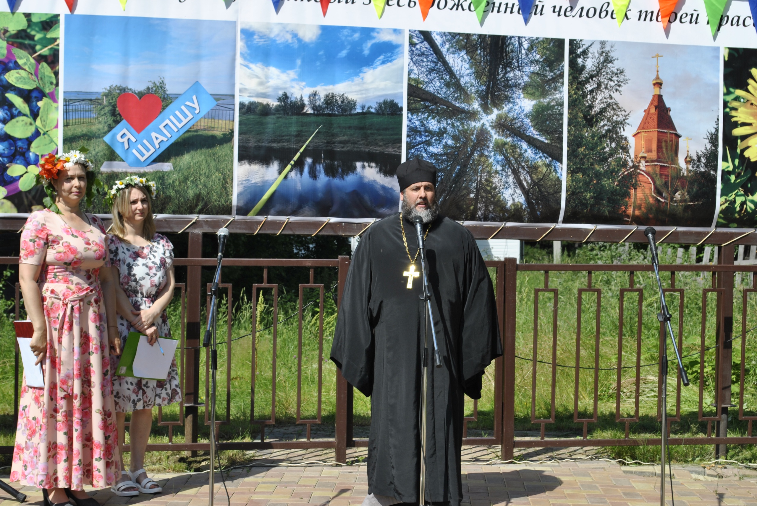 Перед односельчанами выступили с приветствиями Глава сельского поселения Шапша Л.А. Овчерюкова и настоятель храма в честь святого преподобного Евфимия Великого д. Шапша иеромонах Роман (Киселев).