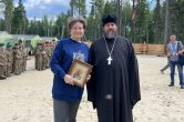 В этот же день настоятель Свято-Евфимиевского храма поздравил с Днем семьи, любви и верности Губернатора Ханты-Мансийского автономного округа – Югры Н.В. Комарову, которая присутствовала на открытии Международных соревнований «Югорские обласа», и преподнес ей от имени прихожан икону преподобного Евфимия Великого.