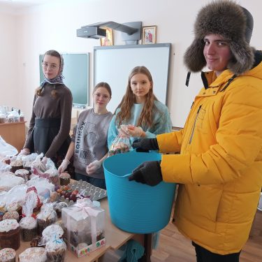 День Светлого Пасхального Воскресения для ребят из молодёжного движения прихода храма Георгия Победоносца г.Сургута выдался напряжённым. С самого утра и до вечера молодёжь трудилась на разборе и фасовке праздничной снеди, пожертвованной прихожанами храма. В праздничный день работа спорилась, а такой совместный и полезный труд еще больше сблизил ребят. Христос Воскресе! Воистину Воскресе!
