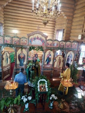 В завершении вечерни настоятель храма обратился к собравшимся с проповедью на тему евангельского зачала, а также сердечно поздравил всех прихожан с праздником Святой Троицы.
