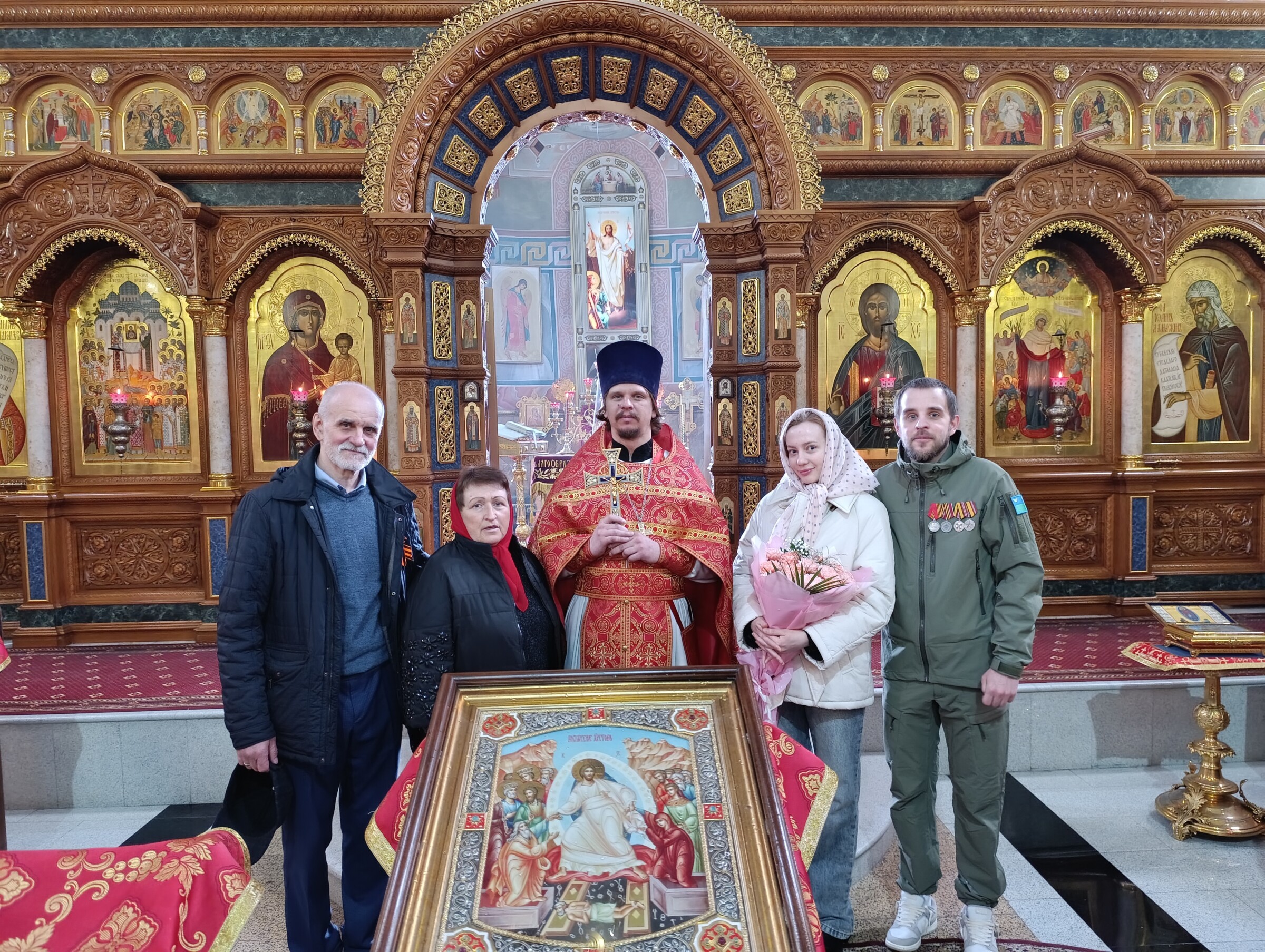 С этим замечательным днем совпал и приезд в отпуск воина СВО Евгения Барцевича, сына одного из прихожан храма Александра Барцевича, которые обратились к прихожанам с благодарственным словом. Евгений рассказал, как чувствуется и как нужна на фронте молитвенная поддержка и просил прихожан не ослаблять молитв. Отец Евгений отдельно поздравил супругу воина с праздником, подарил букет и рассказал о том, как она ездила по госпиталям за мужем и выхаживала после тяжелейших ранений.