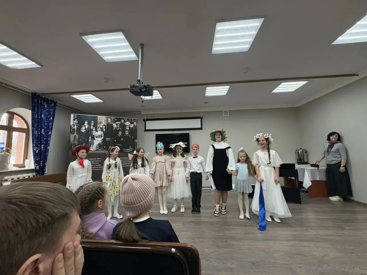 Затем празднование переместилось в дом причта, где для женщин силами детей Воскресной школы, был подготовлен концерт, после которого состоялось чаепитие.