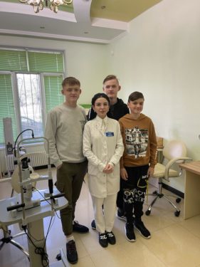 трое ребят , из числа эвакуированных жителей ДНР, проживающих на базе Олимпия имеющие проблемы со зрением, прошли обследование в офтальмологическом центре Визус г.Сургута .