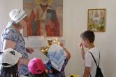 После прогулки по территории экскурсия была продолжена в храме. Дети со вниманием участвовали в беседе о добре и зле, грехах и добродетели. Ребят разных национальностей, различной конфессиональной принадлежности волнуют одинаковые вопросы: как сохранить мир и любовь, как жить в дружбе. С искренней радостью все решили помолиться о своих близких и зажечь свечи перед иконами святых. А в завершении встречи ребятам было разрешено выбрать себе иконки или православную литературу на память.