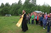 В первый день открытия лагеря, был отслужен молебен, с просьбой ко Господу о ниспослании благодати на совершение благого дела. После этого лагерь начал свою работу. В образовательном процессе приняли участие сотрудники » Духовно-просветительского центра». Отец Вячеслав Фомин проводил занятия , где рассказывал о основных вехах в истории Государства Российского – начиная с крещения Руси и заканчивая покорением Сибири Ермаком. Кроме этого, по просьбе ребят, для них были проведены занятия по основам Православной веры.