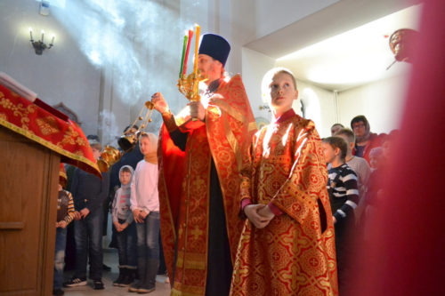 8 апреля в день светлого Христова Воскресения в 12:00 часов дня в храме в честь иконы Божией Матери «Всех Скорбящих Радость» г. Лангепаса, состоялся детский Пасхальный Молебен, который возглавил иерей Димитрий Чиндяскин. Хотелось бы отметить, что подобный молебен является на сегодняшний день замечательной альтернативой взамен ночной службы для совсем маленьких православных христиан, которые не могут, в силу своего возраста прийти на службу. Вера детей более чистая, более светла, и сам господь выделяет детей говоря: Но Иисус, подозвав их, сказал: пустите детей приходить ко Мне и не возбраняйте им, ибо таковых есть Царствие Божие. Истинно говорю вам: кто не примет Царствия Божия, как дитя, тот не войдет в него (Лук. 18: 16-17).