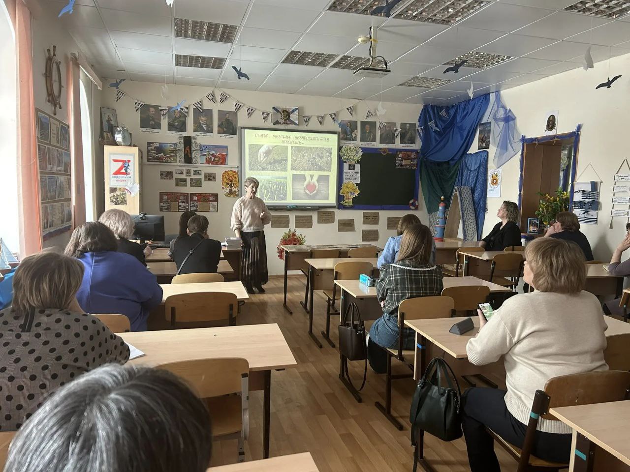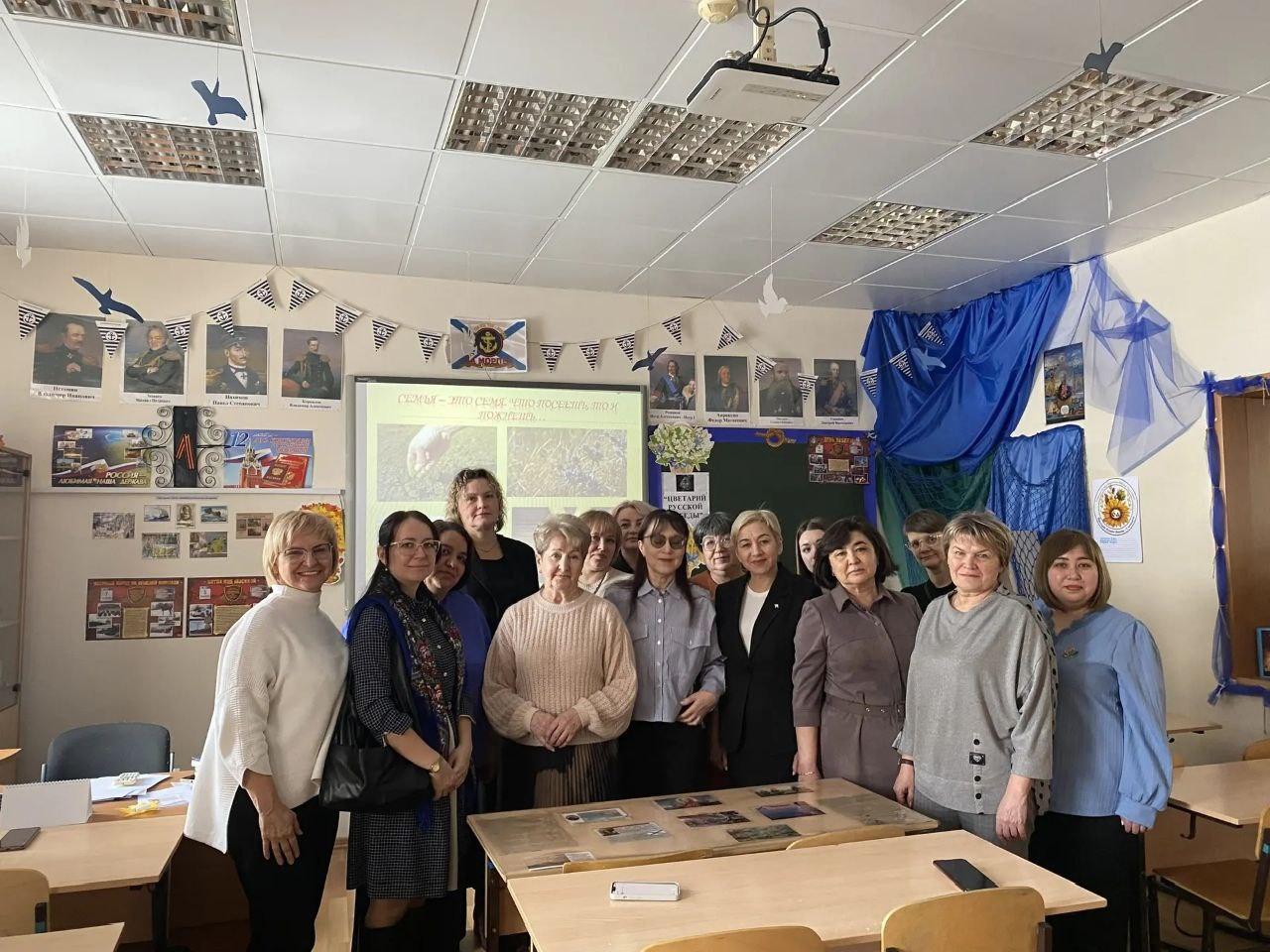 Сначала Н. А. Мунтян, заместитель директора православной гимназии и также член Союза православных женщин, провела для гостей экскурсию по гимназии, познакомила с работой по духовно-нравственному и патриотическому воспитанию, которая ведётся в гимназии. Педагоги искренне были удивлены тем, какая большая и по-настоящему глубокая работа идет с детьми по этим направлениям. Особенно поразило коллег оформление гимназии к 80-летию Великой Победы, сделанное руками детей, родителей и педагогов.