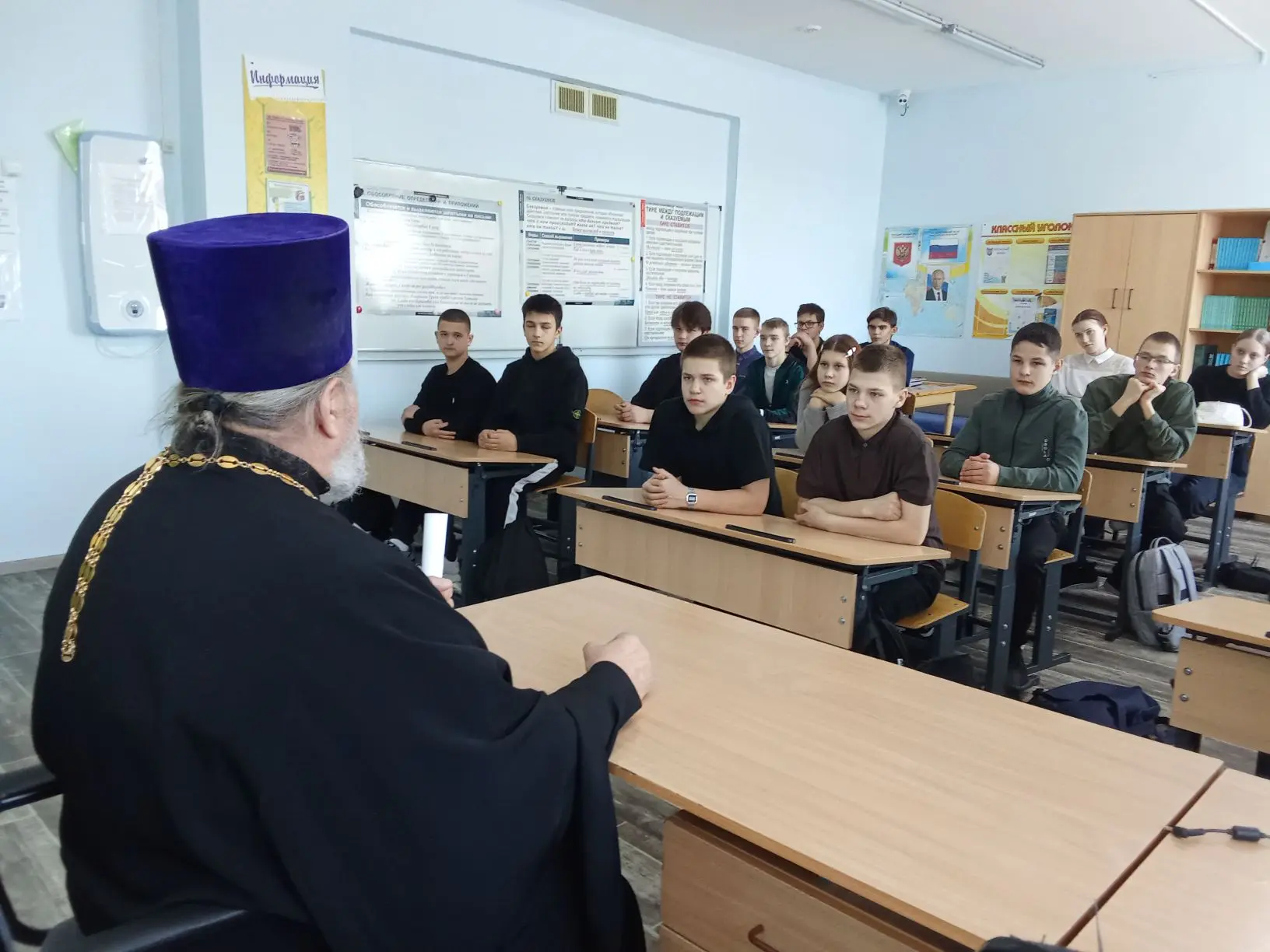 Беседа прошла в теплой атмосфере взаимопонимания и вызвала живой интерес среди учеников. Отец Иоанн призвал ребят помнить о значимости веры и патриотизма в формировании характера современного человека, отметив, что именно следование высоким моральным принципам помогает сохранить единство народа и укрепить Отечество.