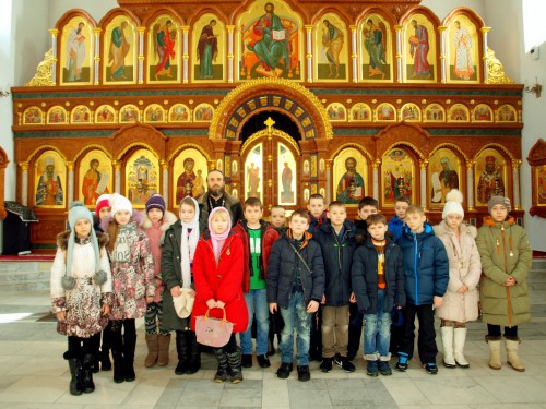 23 марта 2016 года настоятель храма, протоиерей Валерий Басакин провел экскурсию для воспитанников МОУ СОШ №3. Батюшка рассказал ребятам о том, какие бывают храмы по форме, и какой глубокий духовный смысл заложен в архитектуру каждого храма. Введя в храм детей, отец Валерий рассказал о внутреннем убранстве православного храма, а также о том, как необходимо правильно вести себя, приходя в храм.