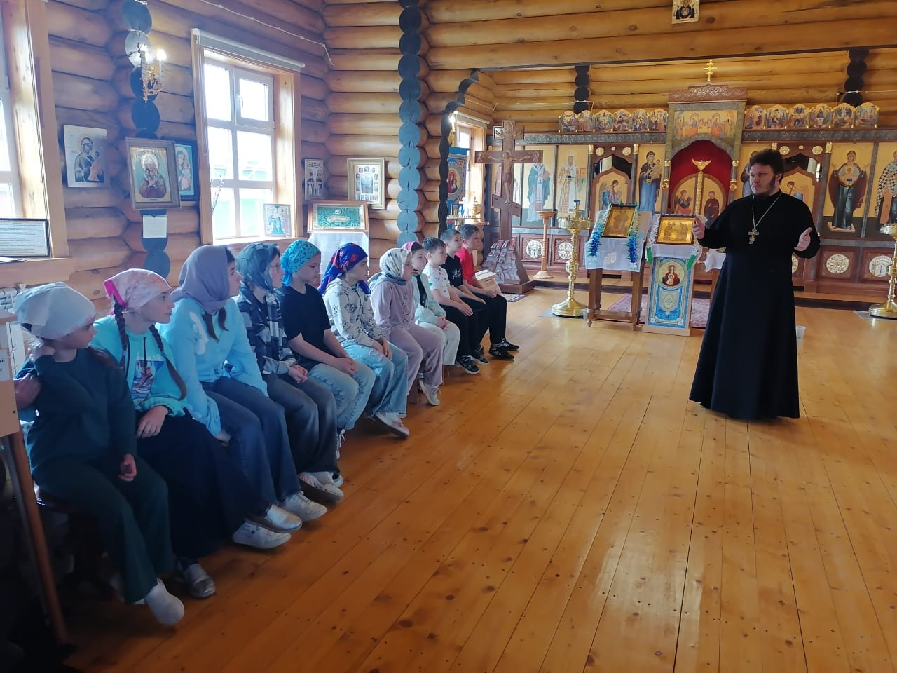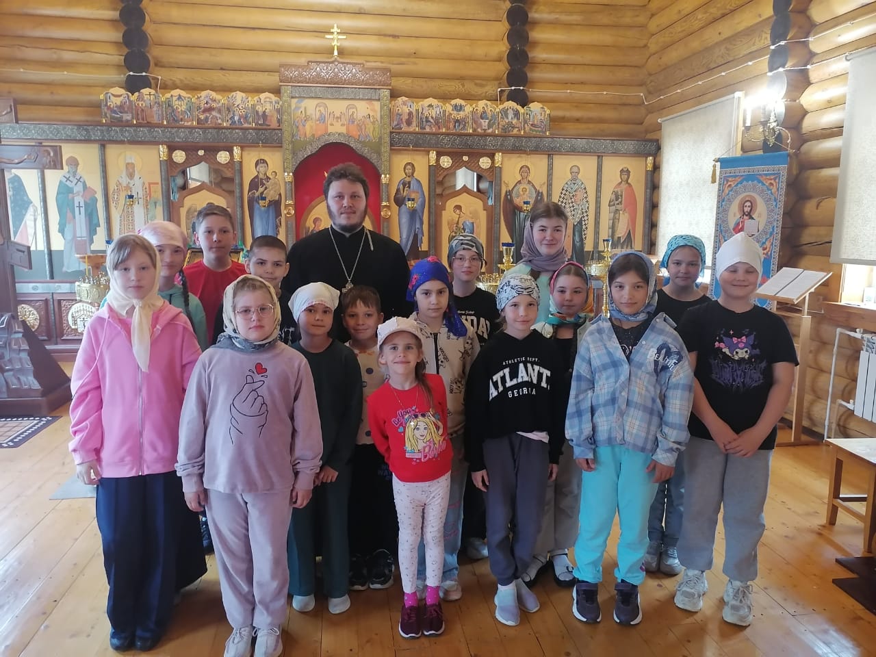 07.06.2025г. клирик храма святителя Николая Чудотворца пгт. Излучинск иерей Никита Скрябин провёл экскурсию по храму в честь иконы Божией Матери «Знамение» с. Ларьяк для воспитанников Дворового клуба на базе МАОДО «Ларьякская ДШИ». Также священник вместе с ребятами поговорили о приближающемся празднике святой Троицы.