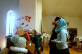 По окончании экскурсии батюшка вместе с детьми поднялся на клирос, где регент церковного хора Анастасия Владимировна рассказала о церковном пении в храме, и исполнила одно из песнопений на греческом языке.