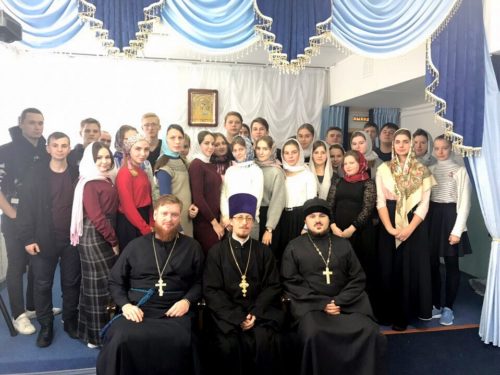 После Богослужения в классе воскресной школы дома притча храма Рождества Иоанна Предтечи, состоялась духовная встреча с духовником православной гимназии – протоиереем Валерием Басакиным. В своей речи батюшка акцентировал внимание молодёжи на важность исполнения Евангелских заповедей, касающихся социального служения Христиан. Напомнил о том, что мы – христиане призваны в первую очередь помогать друг другу и всем людям на этой земле. Ребята задавали интересующие их вопросы. Ведь не каждый день ты можешь удостоиться такой замечательной встречи.