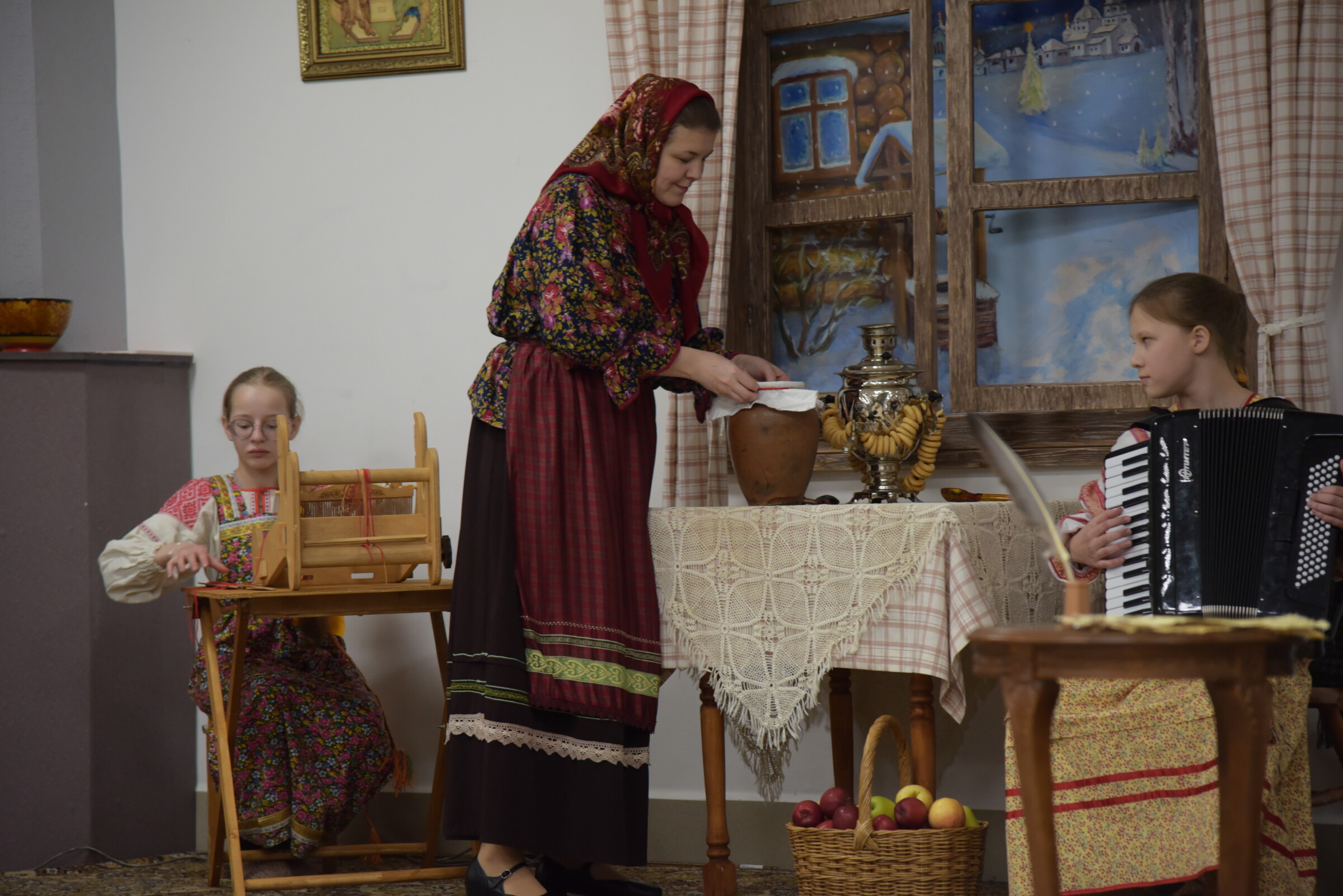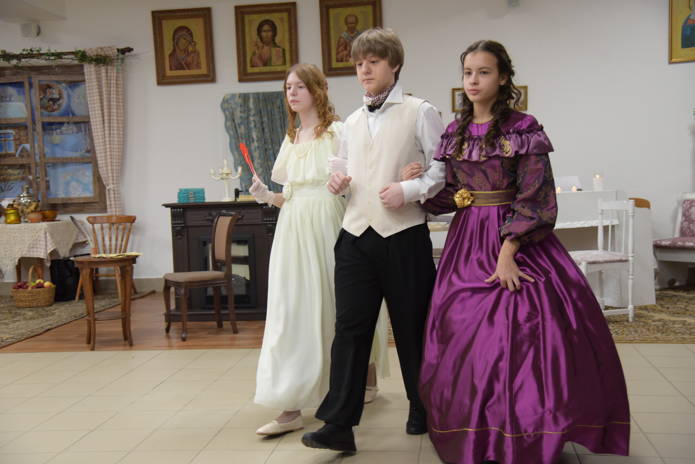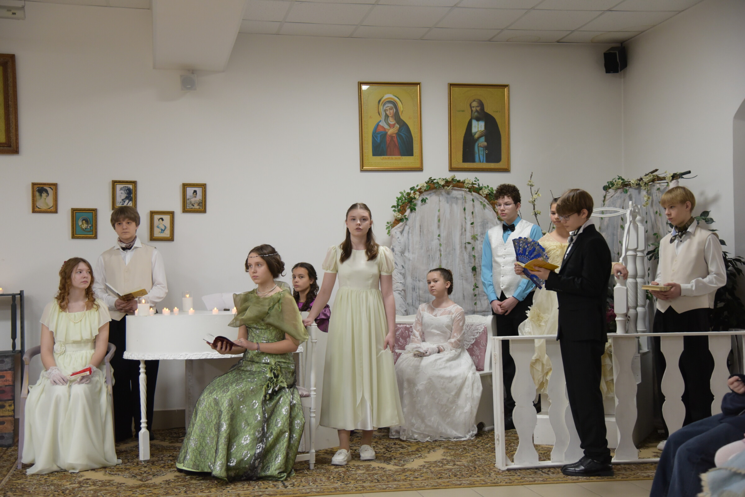 Были прочитаны духовные стихи поэта и его переложения молитв в стихи. Была показана сцена, изображающая теплые отношения поэта и няни, её влияние на его личностное становление. Роль Арины Родионовны сыграла Абинова Марина Юрьевна, педагог Воскресной школы и преподаватель колледжа русской культуры имени А.С. Знаменского.