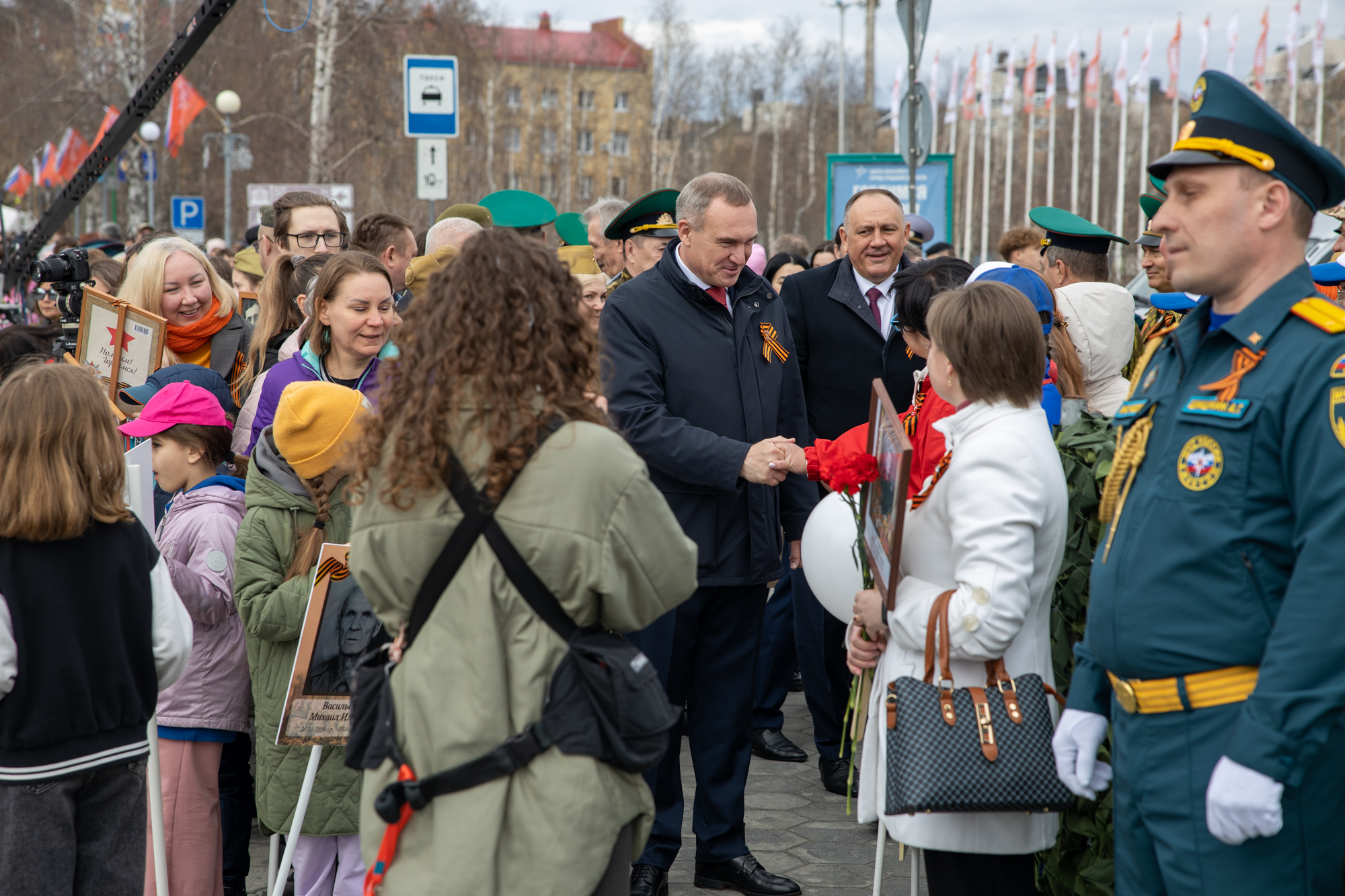 В праздничных мероприятиях приняли участие губернатор Югры Руслан Кухарук, сенатор Совета Федерации Наталья Комарова, члены югорского Правительства, ветераны Великой Отечественной войны, труженики тыла, участники Специальной военной операции, духовенство Ханты-Мансийской епархии, почетные жители, представители трудовых коллективов города.