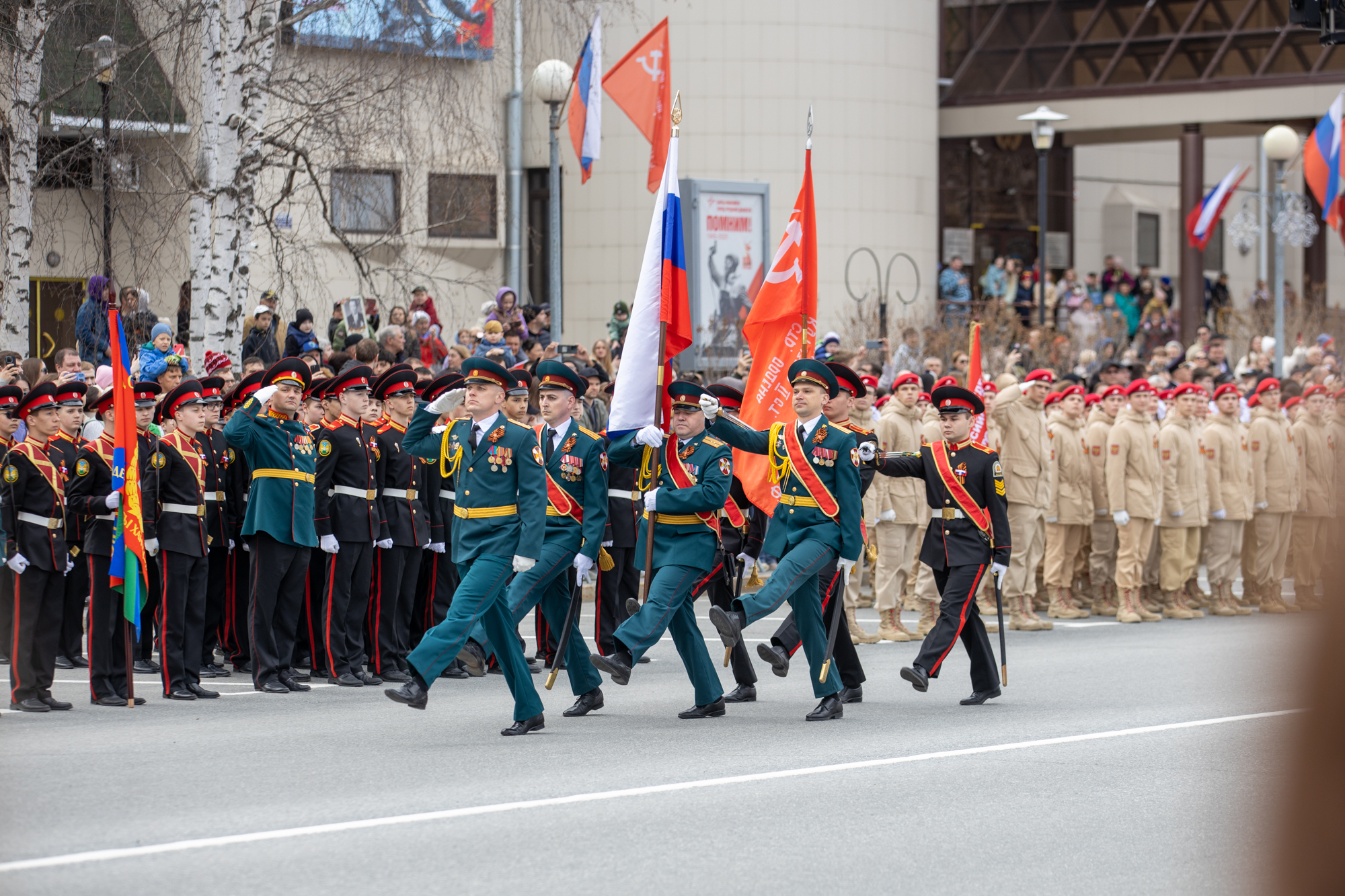 В ознаменование 80-й годовщины Победы Советского народа в Великой Отечественной войне, соблюдая ратные традиции Российской Армии, завершил церемонию парад военизированных подразделений, ветеранов боевых действий, кадетских классов, юнармейских отрядов, военной техники времен войны.