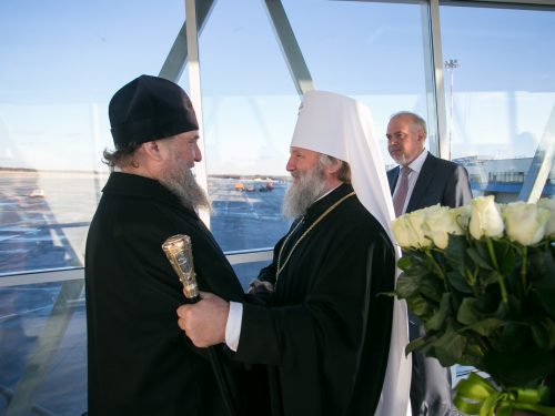 В аэропорту г. Сургута митрополита Астанайского и Казахстанского Александра встречали: митрополит Ханты‐Мансийский и Сургутский Павел, глава г. Сургута Шувалов Вадим Николаевич, благочинный Сургутского благочиния протоиерей Антоний Исаков.