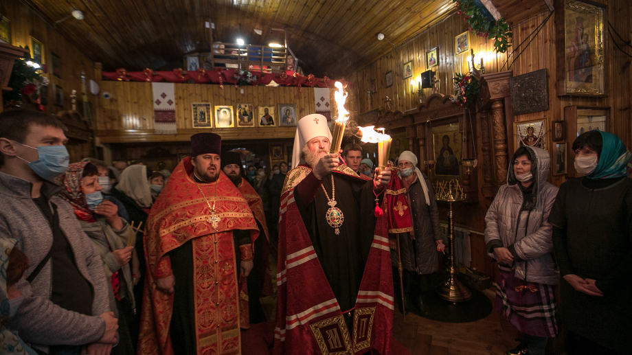 Митрополит Ханты-Мансийский и Сургутский Павел совершил утреню Пасхальным чином в храме в честь св. прав. Симеона Верхотурского пгт. Барсово, Сургутского района