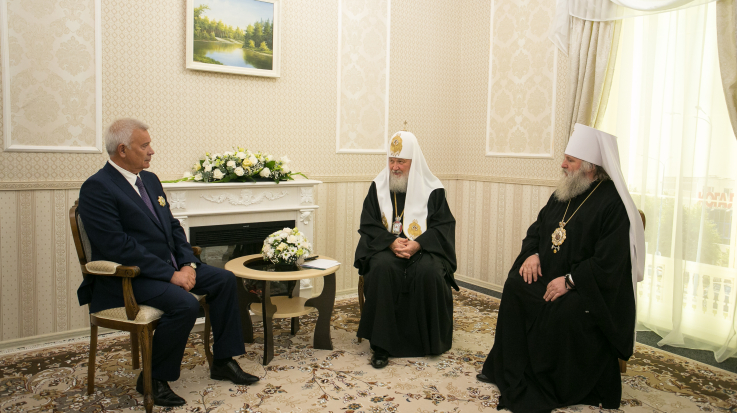 Святейший Патриарх Кирилл встретился с президентом ПАО «Лукойл» В.Ю. Алекперовым и митрополитом Ханты-Мансийским и Сургутским Павлом