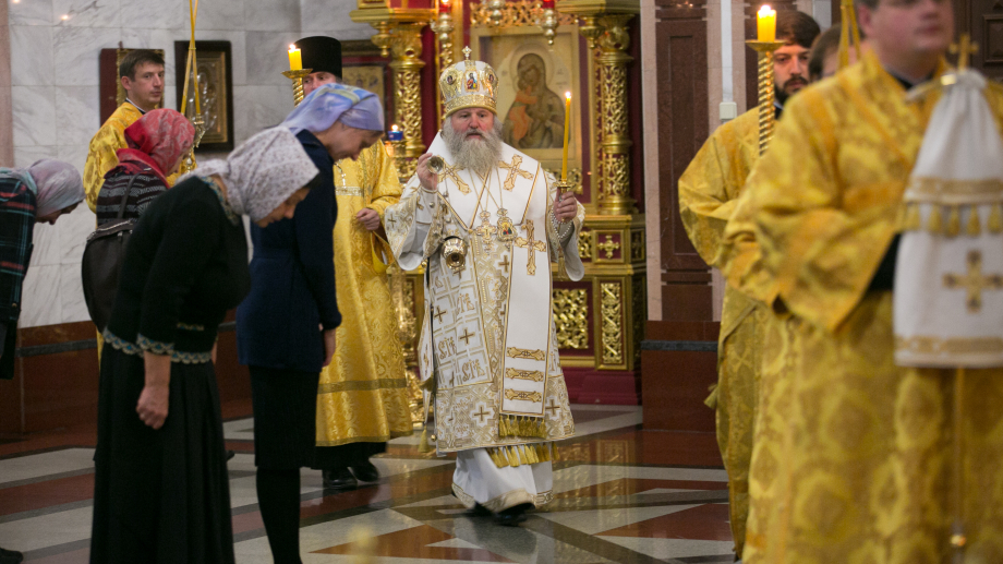 В канун Недели 16-й по Пятидесятнице митрополит Ханты-Мансийский и Сургутский Павел совершил Всенощное бдение в Воскресенском кафедральном соборе г. Ханты-Мансийска