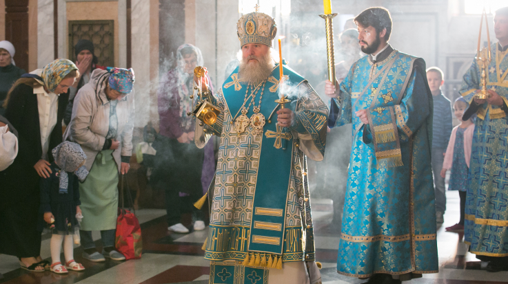 В канун Недели 14-й по Пятидесятнице, митрополит Ханты-Мансийский и Сургутский Павел совершил Всенощное бдение в Воскресенском кафедральном соборе г. Ханты-Мансийска