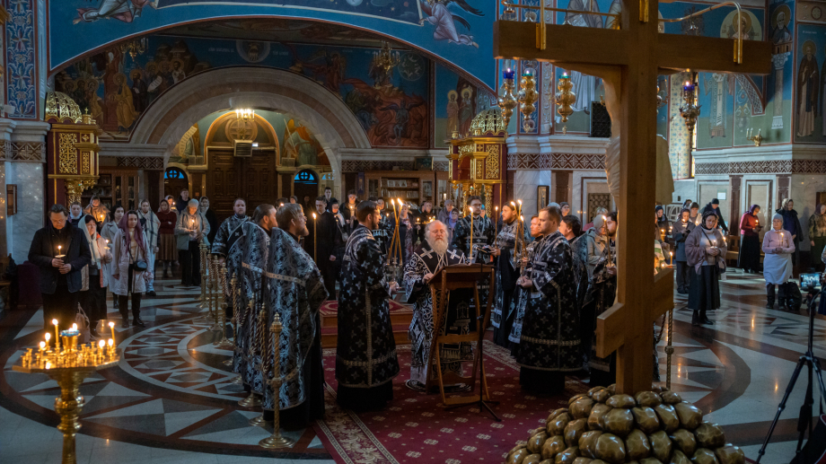 Митрополит Павел совершил утреню Великого пятка с чтением 12-ти Евангелий Святых Страстей Господа нашего Иисуса Христа в Воскресенском кафедральном соборе г. Ханты-Мансийска