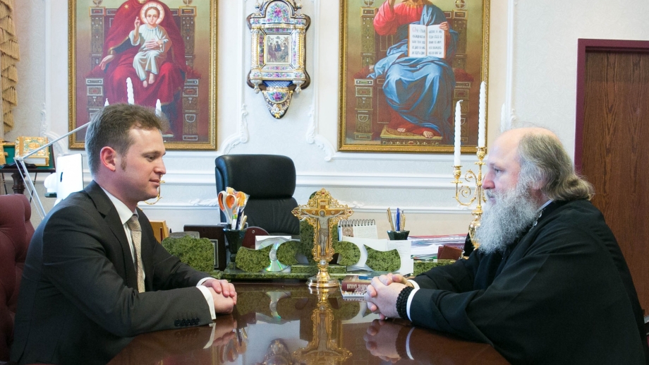 Состоялась встреча Главы Ханты-Мансийской митрополии с исполняющим обязанности директора департамента образования и молодежной политики Ханты-Мансийского автономного округа-Югры А. А. Дрениным.