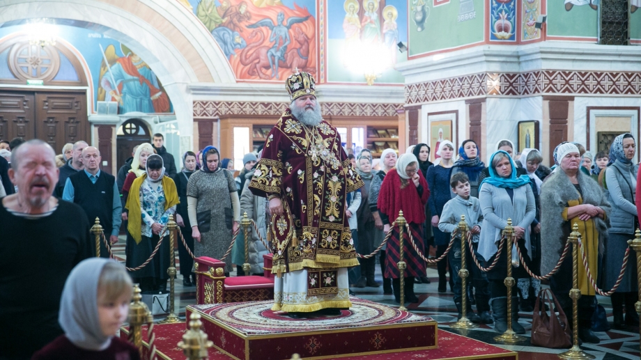 В канун Недели сыропустной, воспоминание Адамова изгнания, митрополит Ханты-Мансийский и Сургутский Павел возглавил Всенощное бдение в Воскресенском кафедральном соборе г. Ханты-Мансийск