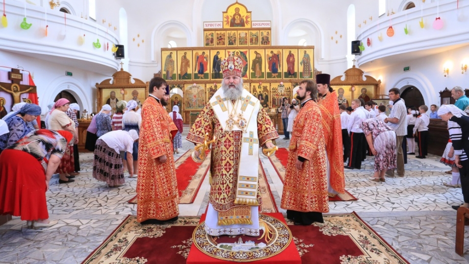 В день Преполовения Пятидесятницы митрополит Ханты-Мансийский и Сургутский Павел совершил Божественную Литургию в храме Святой Троицы пгт. Пойковский