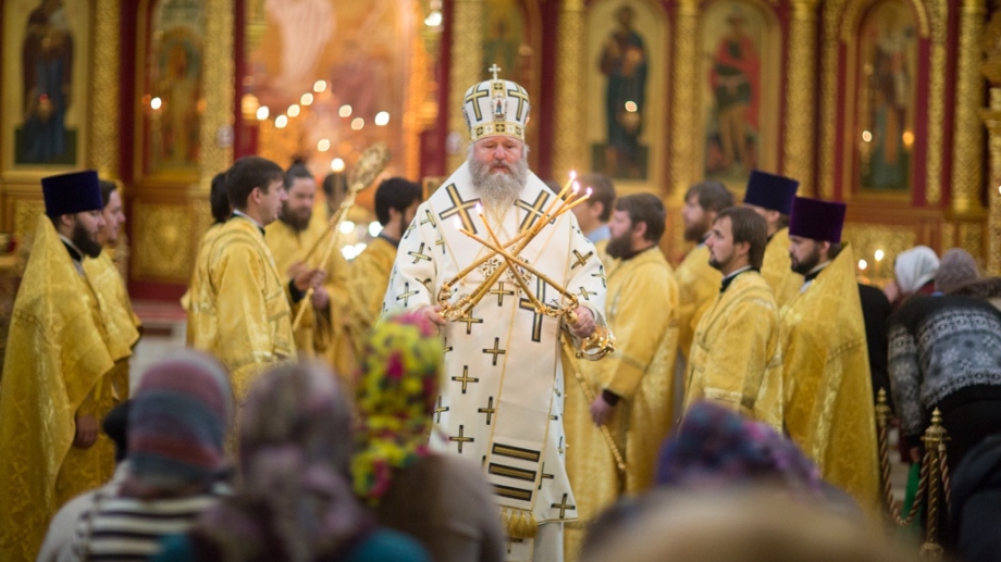 Митрополит Павел совершил вечернее богослужение в кафедральном соборе Воскресения Христова