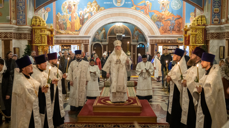 В канун Рождества Господа Бога и Спаса нашего Иисуса Христа митрополит Павел совершил вечернее богослужение в Воскресенском кафедральном соборе г. Ханты-Мансийска