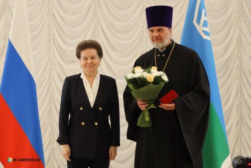 Губернатор Югры Наталья Комарова наградила медалью «Отцовская слава» настоятеля прихода Храма в честь святого благоверного князя Александра Невского города Нижневартовска протоиерея Сергия Бандурина.