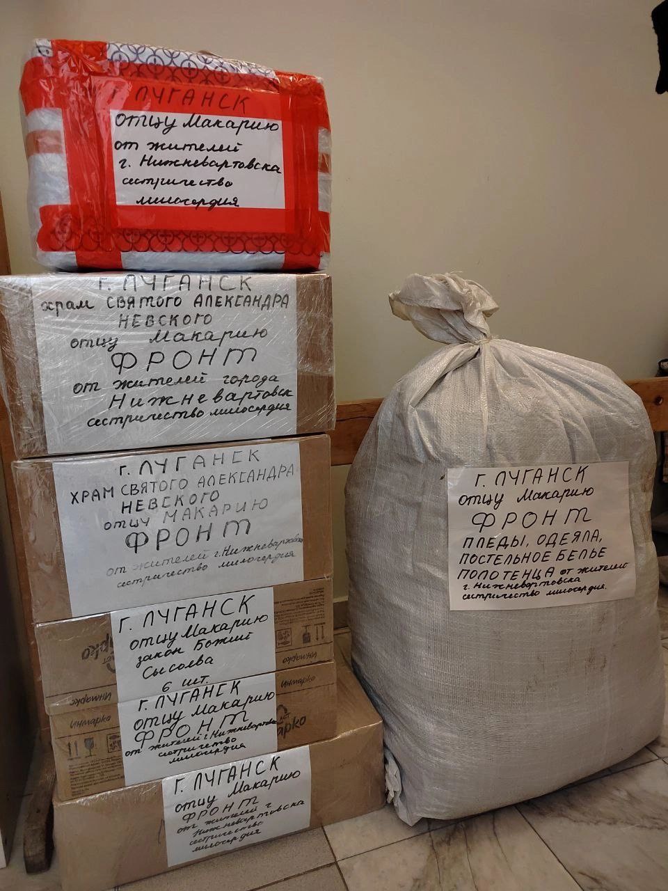Нижневартовское благочиние в лице прихода храма Рождества Иоанна Предтечи и храма Рождества Христова, отправило очередной груз помощи на фронт и в прифронтовой госпиталь. Важно отметить, что помощь была доставлена в храм святого Александра Невского в Луганске при содействии ребят из «Союза морских пехотинцев и семей погибших защитников Отечества».