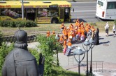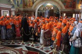 От храма Покрова Пресвятой Богородицы Крестный ход продолжил свое движение на автобусах до собора Воскресения Христова, где отец Вячеслав Фомин встретил участников экспедиции и провел экскурсию по храмовому комплексу Воскресения Христова. Также участники Славянского хода приложились к святыням Воскресенского Кафедрального Собора.