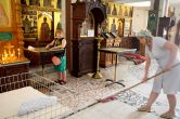 Лето — время отдыха, отпускной период. Жители Крайнего Севера особенно ждут это солнечное теплое время года. Но душа прихожан не остается спокойной, если есть необходимость поработать и в это благодатное время на благо своего Прихода. Ведь это и время для ремонта любимого храма, посадки огорода, ухода за цветниками и просто уборки подсобных помещений. Все, кто имеет такую возможность по здоровью и свободному времени активно принимают участие в этих богоугодных делах, откликаются на призывы организаторов мероприятий. Кто-то берется за сложный ремонт, а кто-то приходит на час или два убраться в храме, покосить подросшую траву, прополоть цветники.