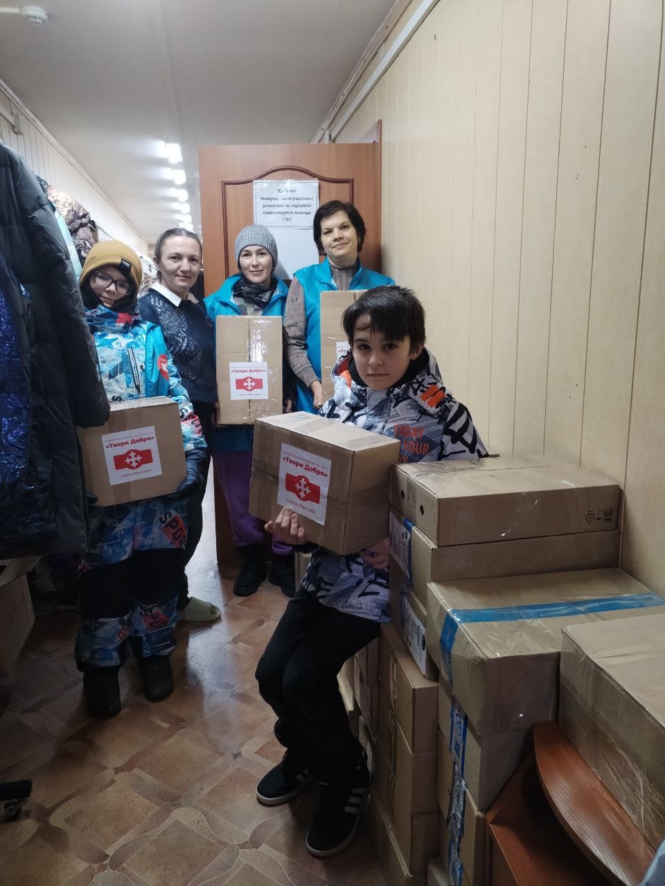 Через православный гуманитарный центр «Твори добро» на фронт было отправлено 250 кг гуманитарной помощи. В состав груза вошли: окопные свечи, медикаменты, маскировочные сети, сшитые мастерицами мужское белье и подушки, пледы, носки (х/б, термо и вязаные), влажные полотенца, продукты длительного хранения, шоколад, моющие средства. Особое внимание было уделено духовной поддержке: в посылки вложили «Молитвенный щит православного воина», пояса «Живые помощи» и сувенирных ангелов с молитвой и сладким подарком.