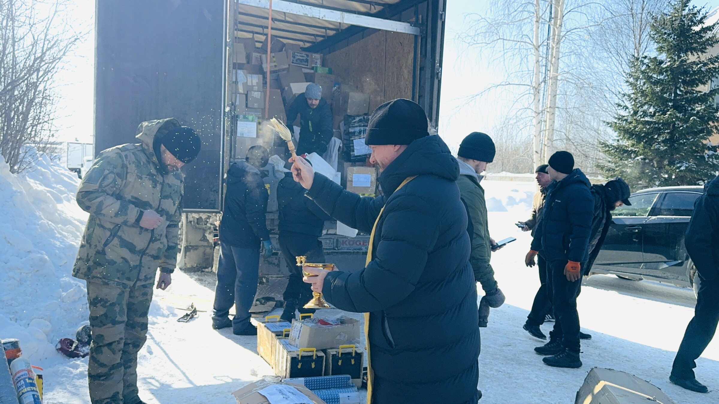13 марта состоялась крупная отправка гуманитарного груза в поддержку наших бойцов в зоне специальной военной операции из города Нижневартовска. Инициаторами благотворительной акции выступили объединения «Союз морских пехотинцев и семей погибших защитников Отечества» и «Северный десант». В отправке принял участие иерей Георгий Болотов. Священник прочитал молитвы перед добрым делом и о путешествующих, благословил волонтёров и освятил транспорт. В погрузке гуманитарного груза приняли участие волонтёры Нижневартовска и добровольцы центра «Свеча Победы» при храме святителя Николая Чудотворца в Излучнске, казаки Нижневартовска и Нижневартовского района, члены «Русской общины».