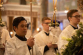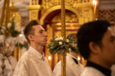 Его Высокопреосвященству сослужили: ключарь Воскресенского кафедрального собора иерей Александр Петюр, клирик Филиппинско — Вьетнамской епархии иеромонах Иоанн (Гондаяо), духовенство собора. Диаконский чин возглавил диакон Даниил Матвеев.