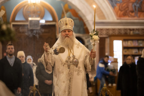 Вечером, 6 января 2023 года, в канун Рождества Господа Бога и Спаса нашего Иисуса Христа митрополит Ханты-Мансийский и Сургутский Павел совершил вечернее богослужение (великое повечерие, лития, утреня и 1-ый час) в Воскресенском кафедральном соборе г. Ханты-Мансийска.