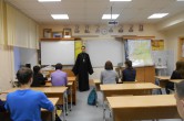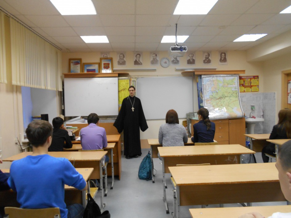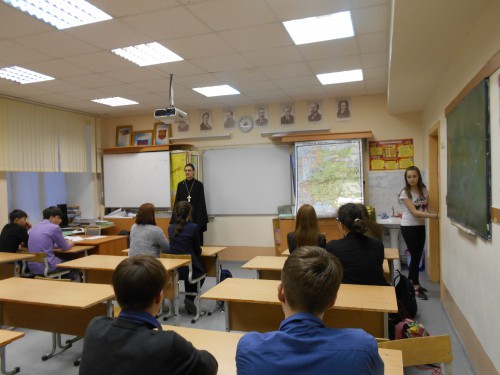 24 марта 2016 года клирик храма Покрова Божией Матери г. Мегион, иерей Илья Балабонкин принял участие в классном часе одного из 8-х классов школы №3 г. Мегиона с углубленным изучением отдельных предметов.
