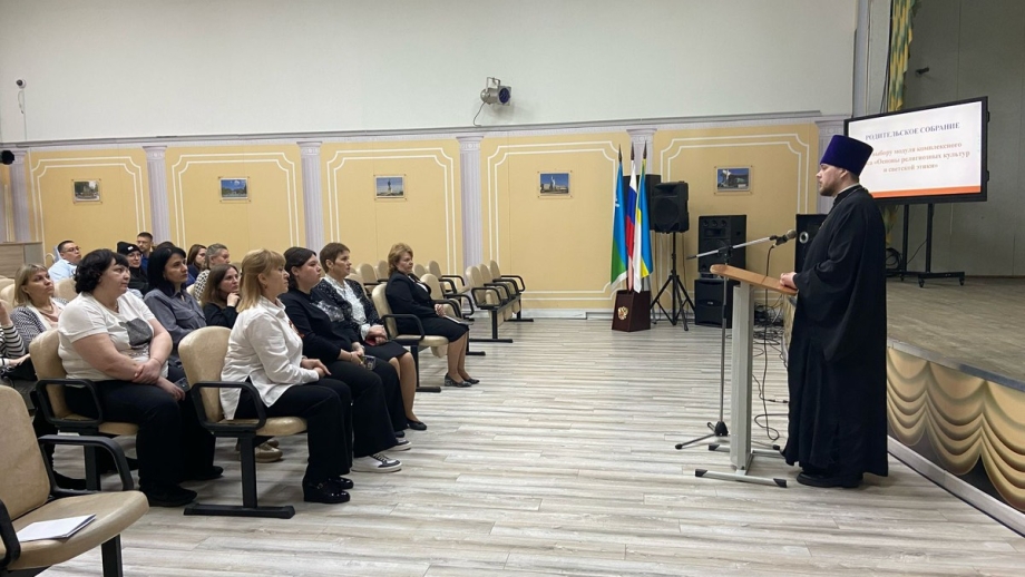 Клирик храма в честь Рождества Христова г. Нижневартовска иерей Николай Глухарёв посетил Нижневартовскую школу № 32, где принял участие в родительском собрании по выбору модуля ОРКиСЭ — основ религиозных культур и светской этики.