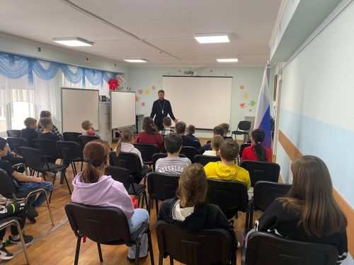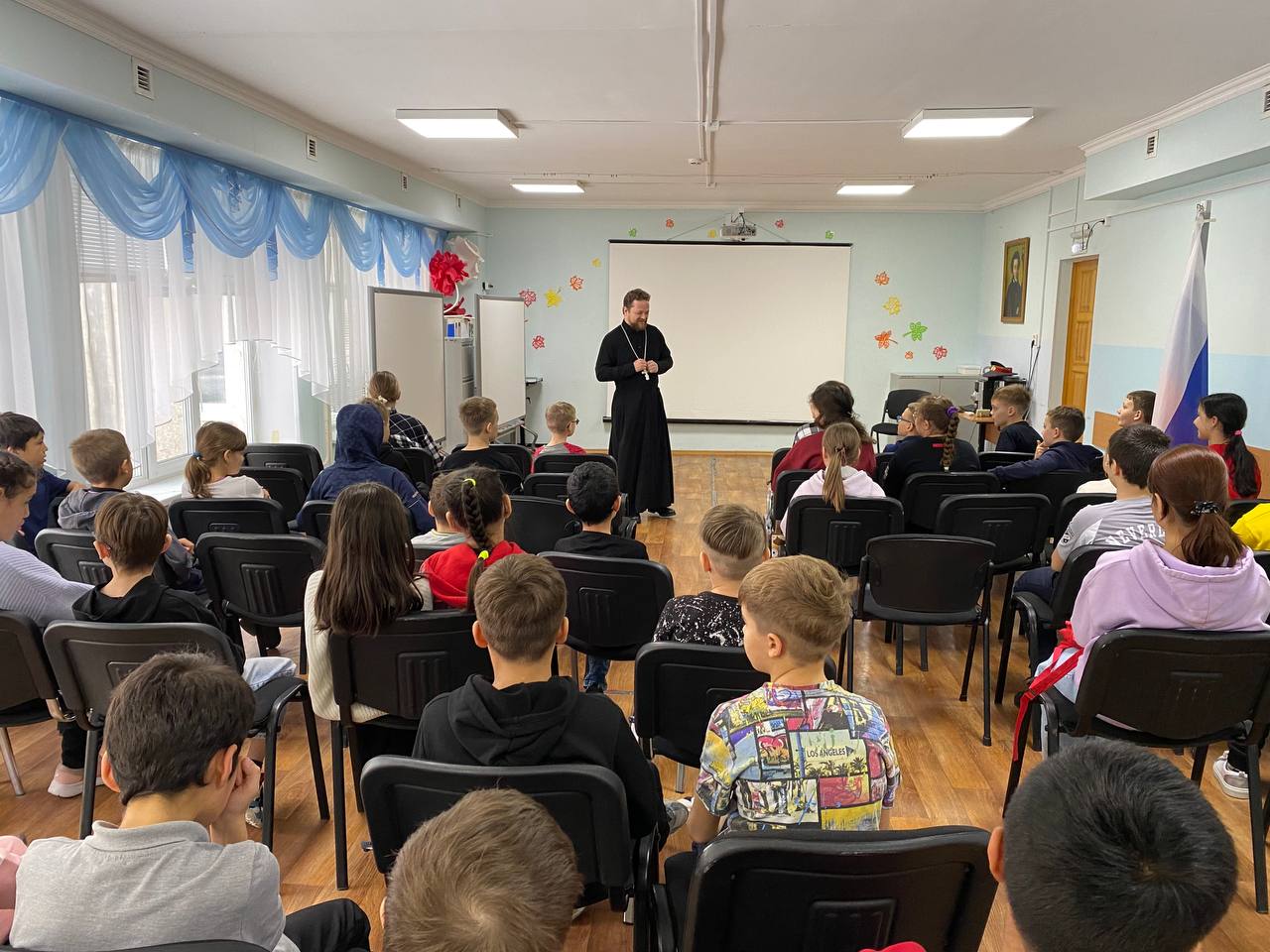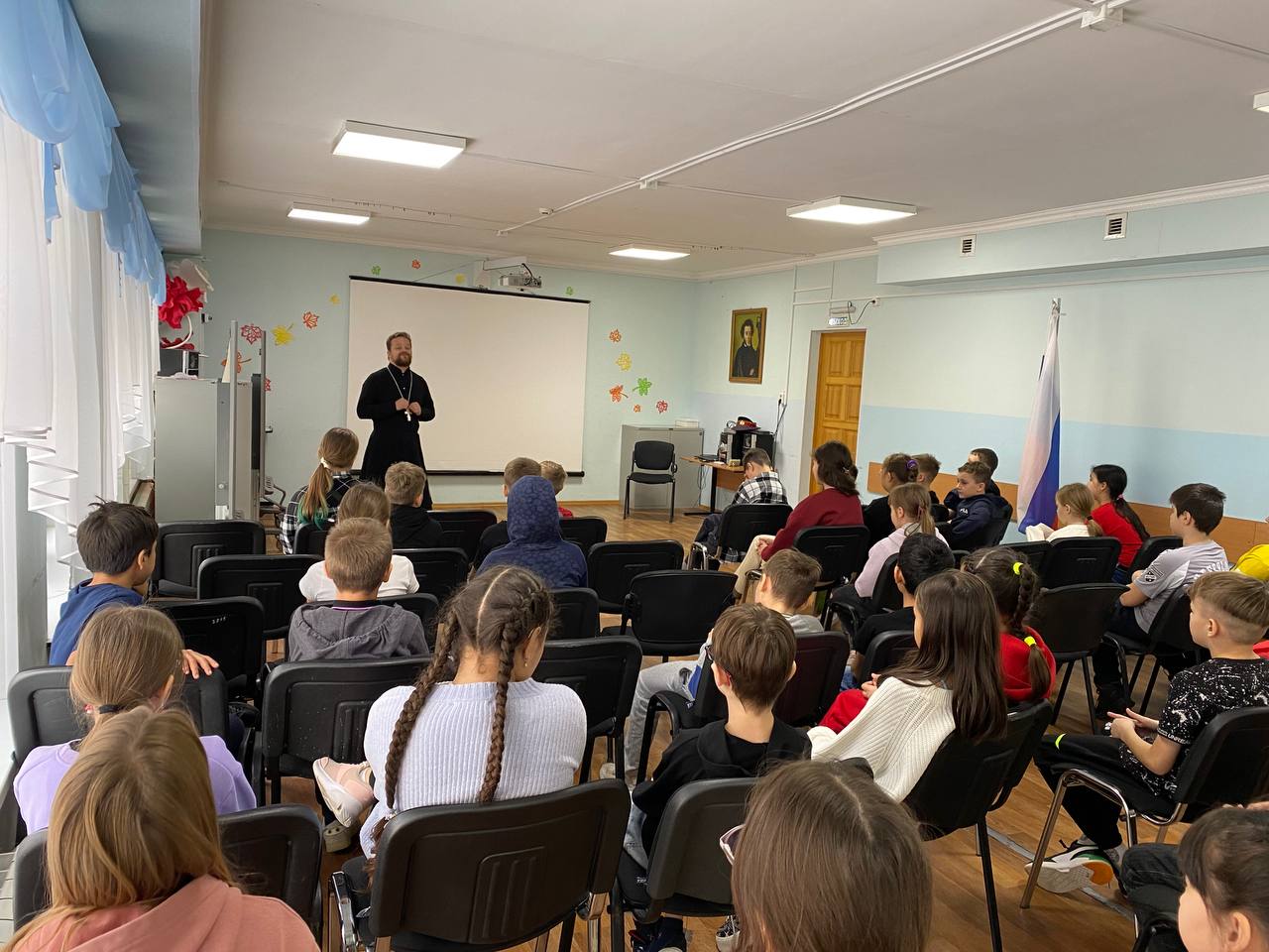Клирик Преображенского собора г. Сургута встретился с воспитанниками школьного лагеря в Школе №45