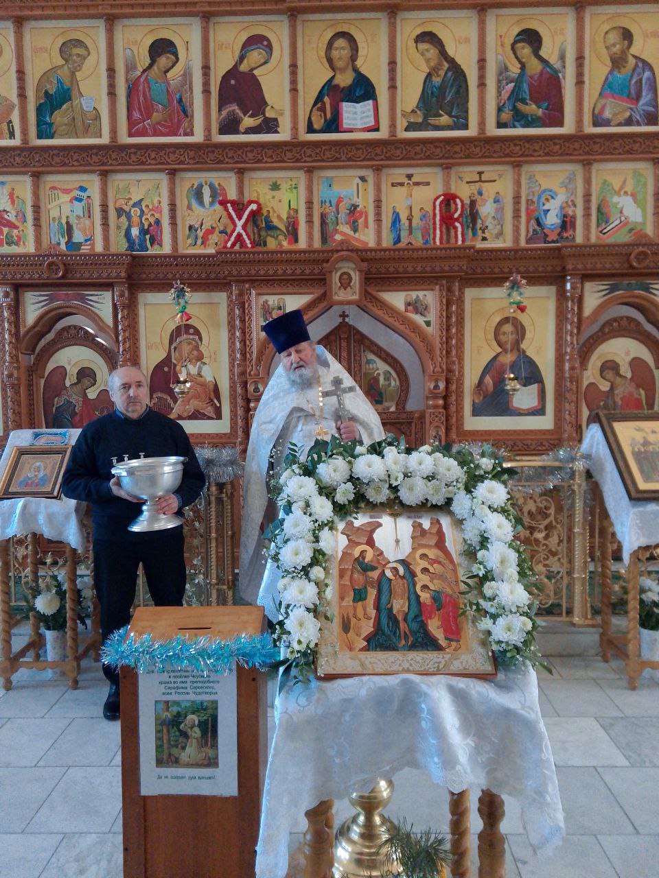 19 января 2025 года в храме Святого прп. Серафима Саровского прошла Божественная Литургия в честь Крещения Господа Бога и Спаса нашего Иисуса Христа и Малое Освящение воды, которое провел Иерей Иоанн Власуков.