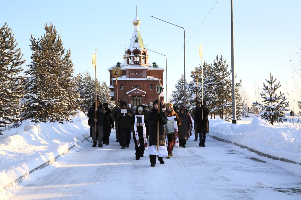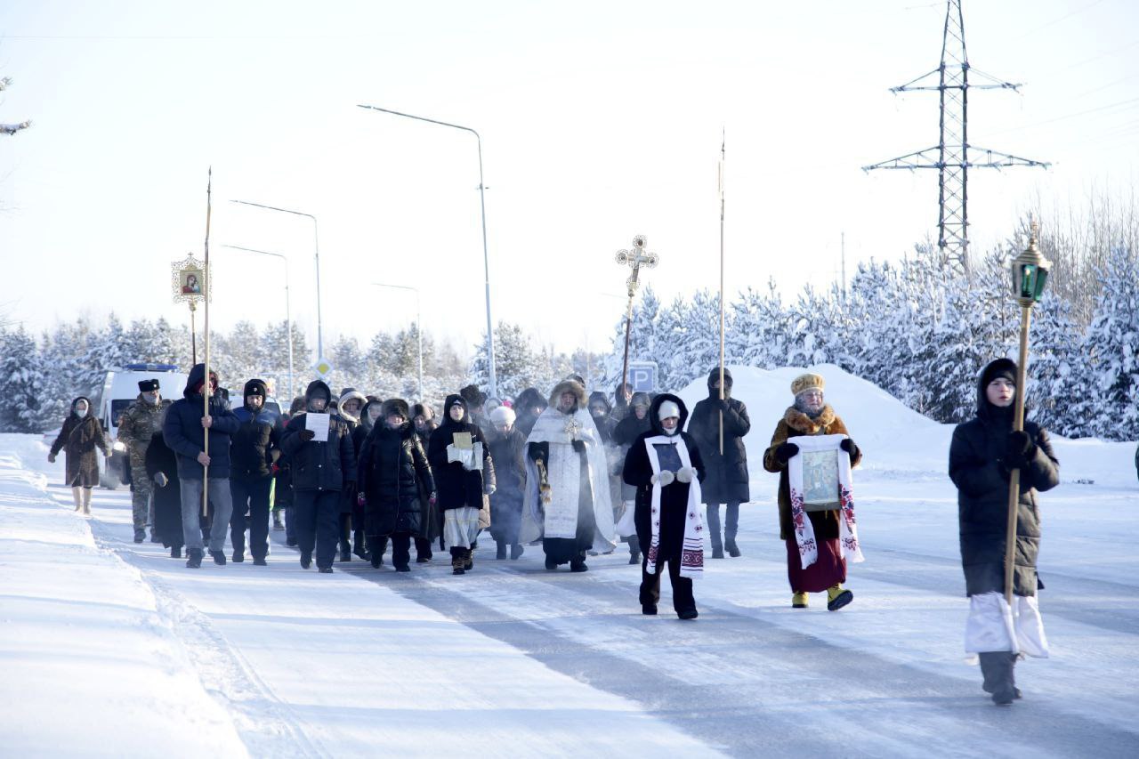 19. 01.2026 иерей Илия Никифоров, настоятель храма в честь Святаго Праведного Иоанна Кронштадтского г. Радужный, совместно с прихожанами храма прошли крестным ходом до реки Аган, где состоялось освящение воды и крещенской купели. Священник поздравил горожан с праздником Крещения Господня и пожелал Божьего благословения всем берущим освящённую воду.